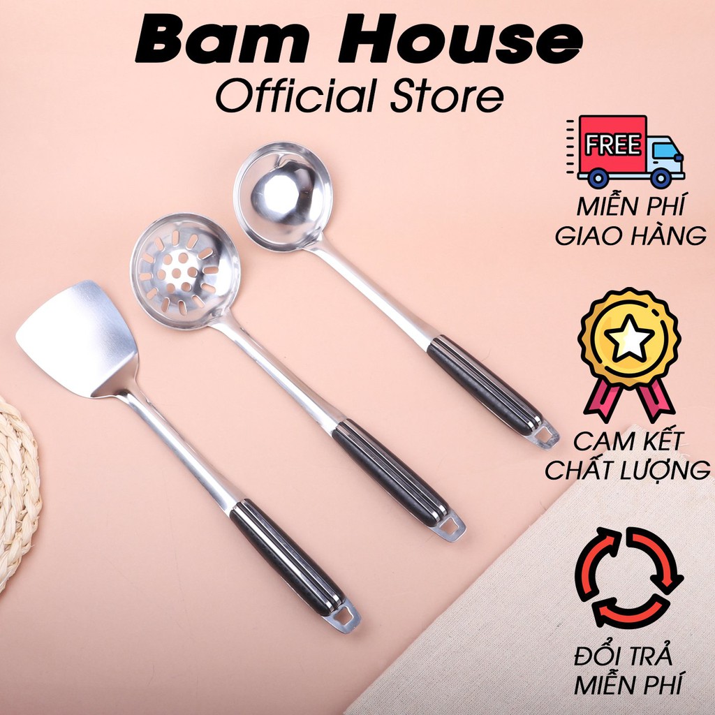 Freeship- Set Vá đặc, Vá lỗ, Xẻng đặc inox Bam House cán nhựa đen cao cấp siêu bền SCD15 - Gia dụng bếp mua tại đây